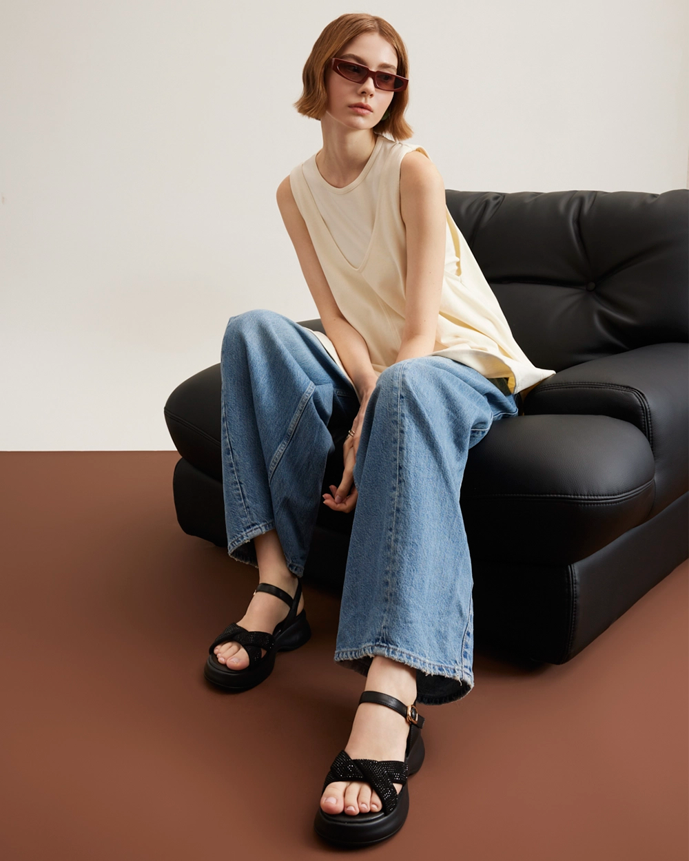 最新商品Olyvienne 水晶裝飾厚底涼鞋