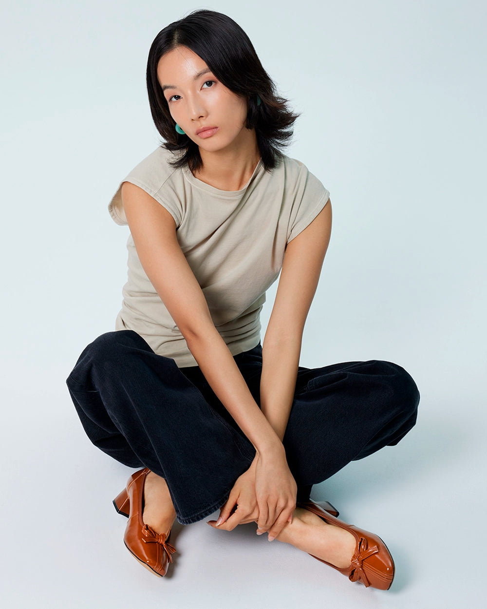 最新商品Silvianne 蝴蝶結牛皮低跟鞋