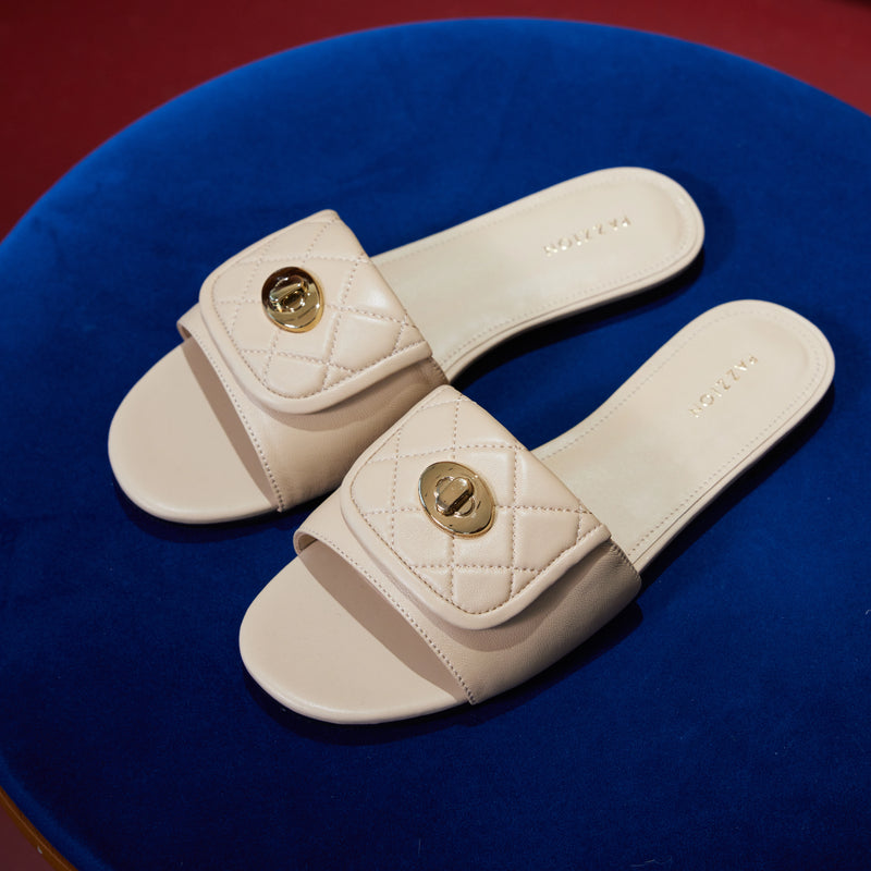 最新商品Jorialyn 菱格紋小羊皮拖鞋