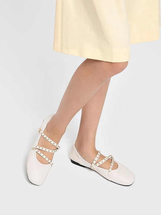 最新商品Kara 金飾蝴蝶結亮面平底鞋
