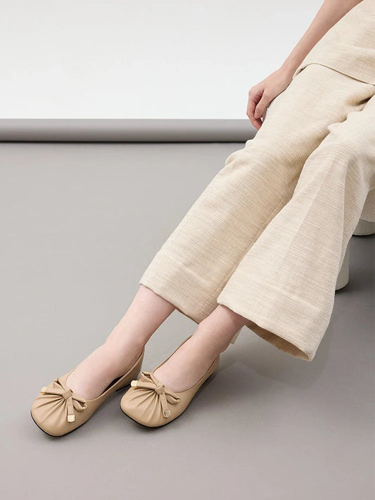 Clarissa 蝴蝶結褶飾平底鞋