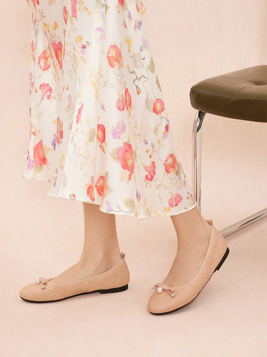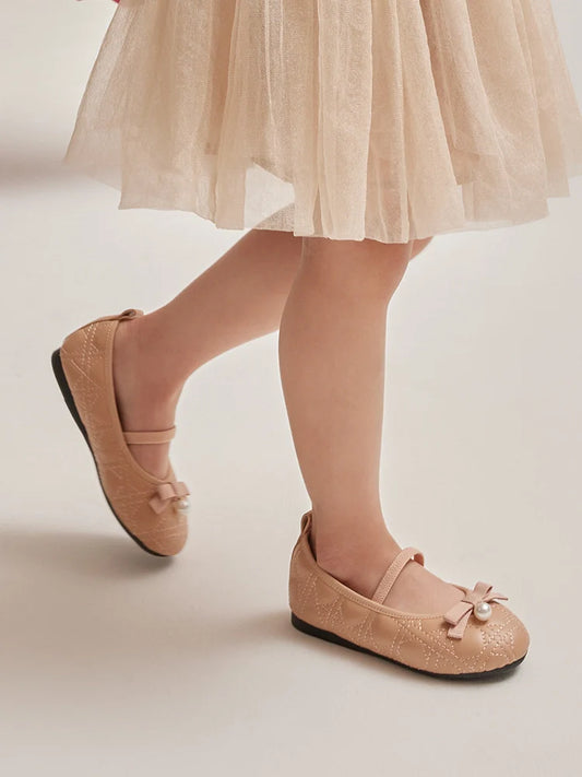 Mini Simona 絎縫珍珠蝴蝶結平底鞋