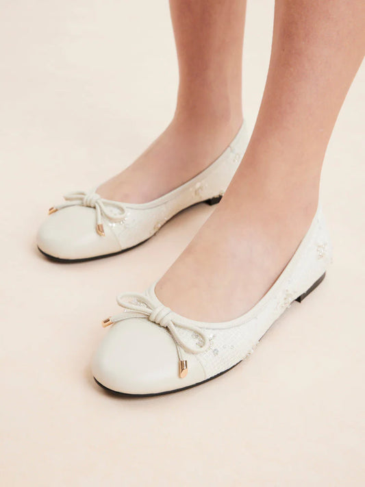 最新商品Heather 蝴蝶結亮片花芭蕾平底鞋