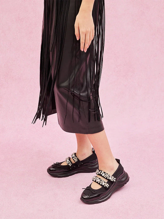 Sofie 粗花呢鑽石搭扣後空平底鞋