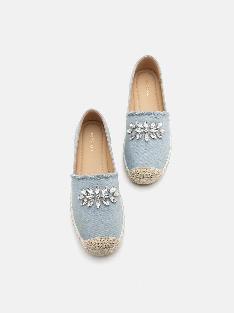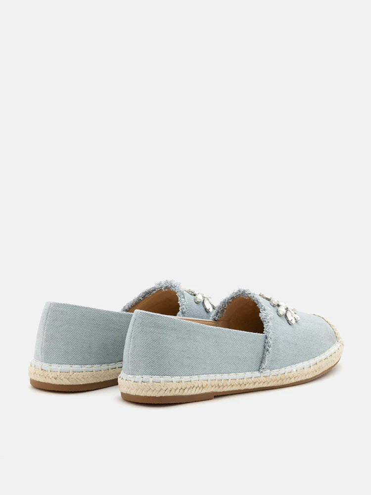 Regina 水晶綴飾牛仔草編鞋