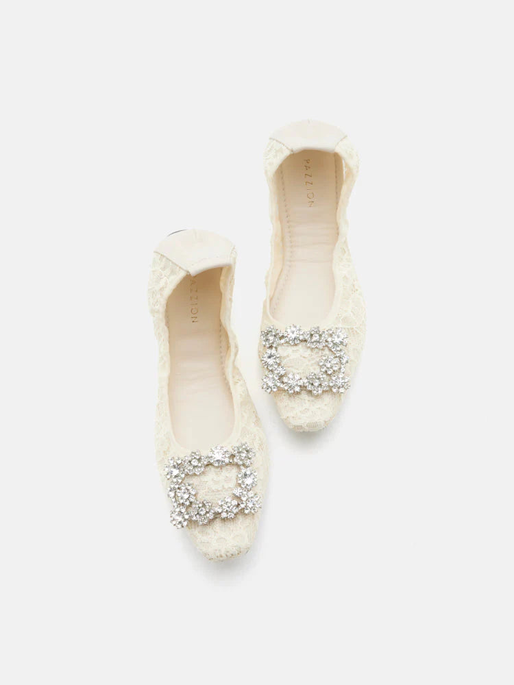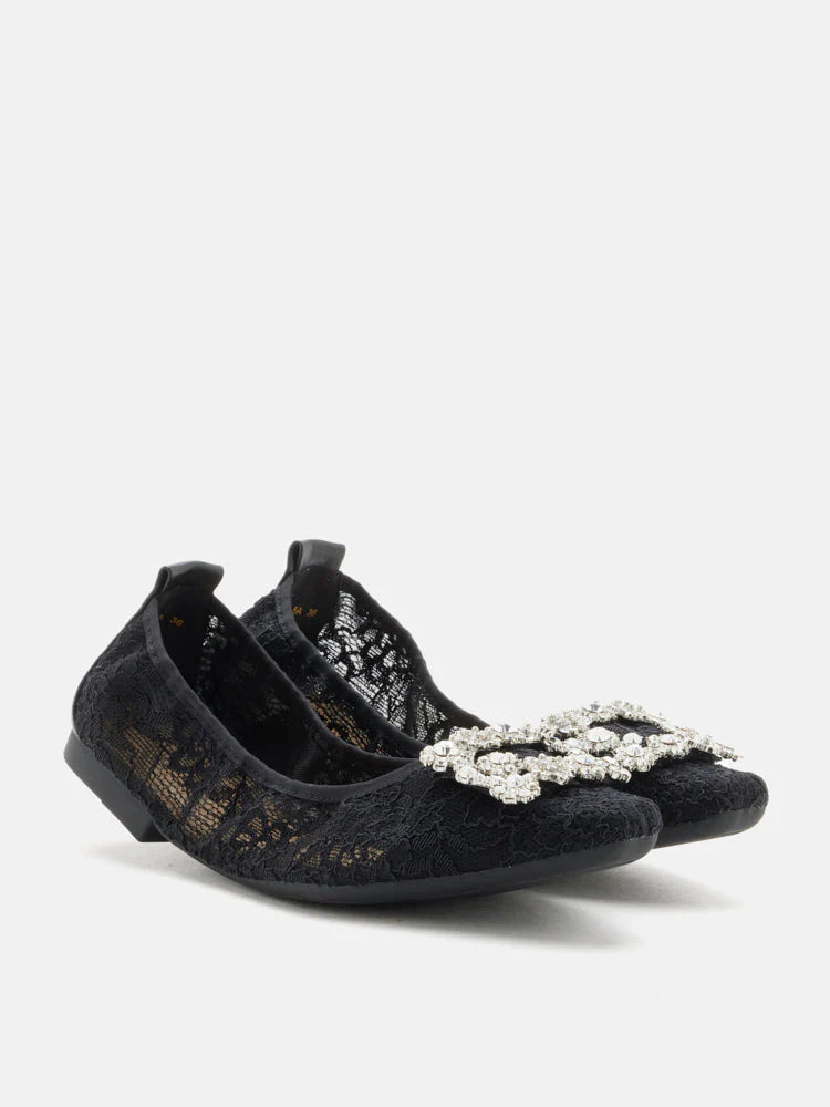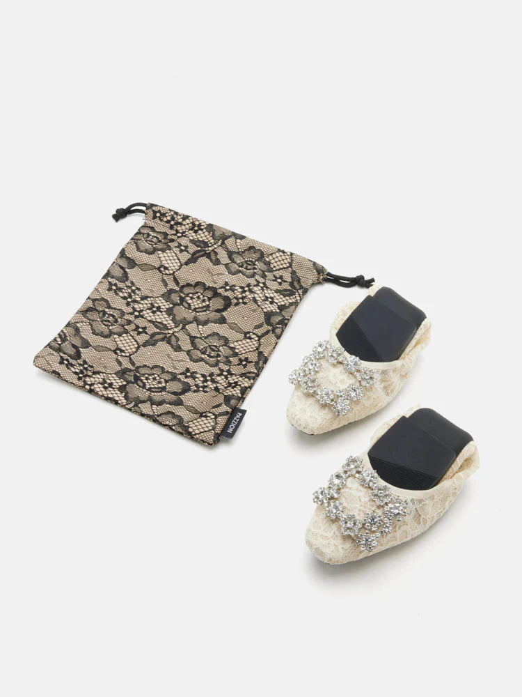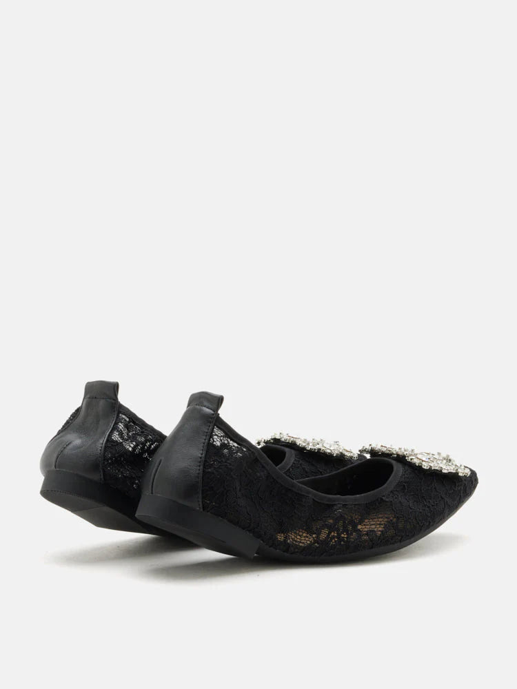 認識 Alina ——優雅與輕鬆便利的結合。這款可摺疊平底鞋專為忙碌的現代女性設計,結構柔軟靈活,卻不失時尚。浪漫的蕾絲外層散發著復古魅力,而超大、耀眼的鑽石飾扣則位於鞋頭的中心位置,閃閃發光的水晶為鞋子增添了一絲魅力。內部的柔軟鞋墊和結實而靈活的鞋底使其完美融合了奢華、舒適和實用性。