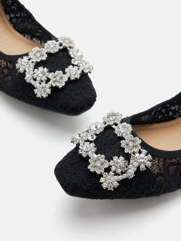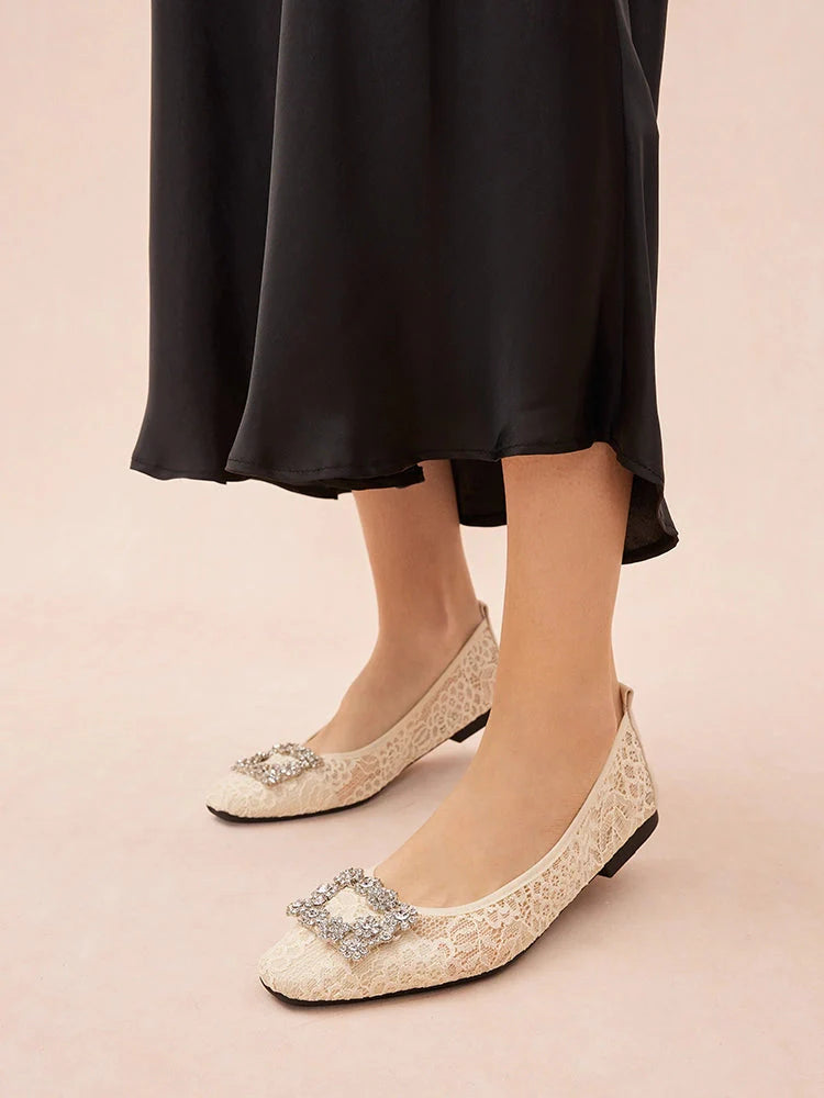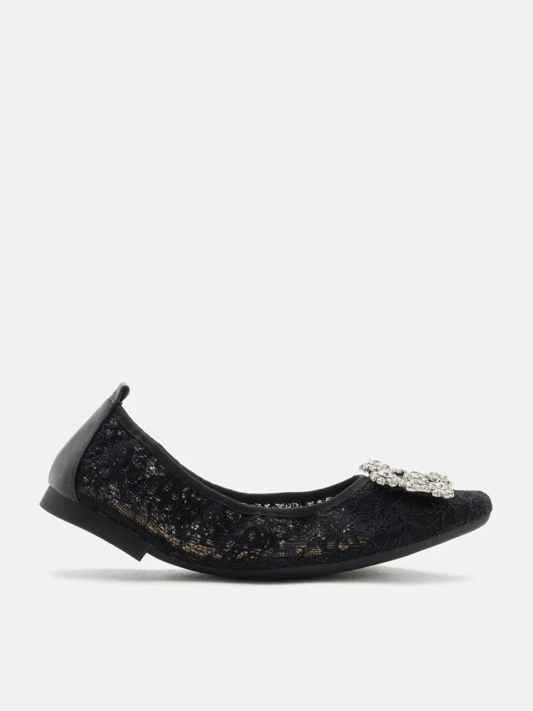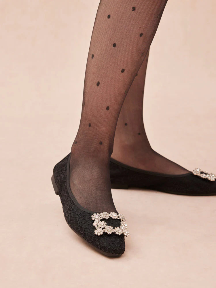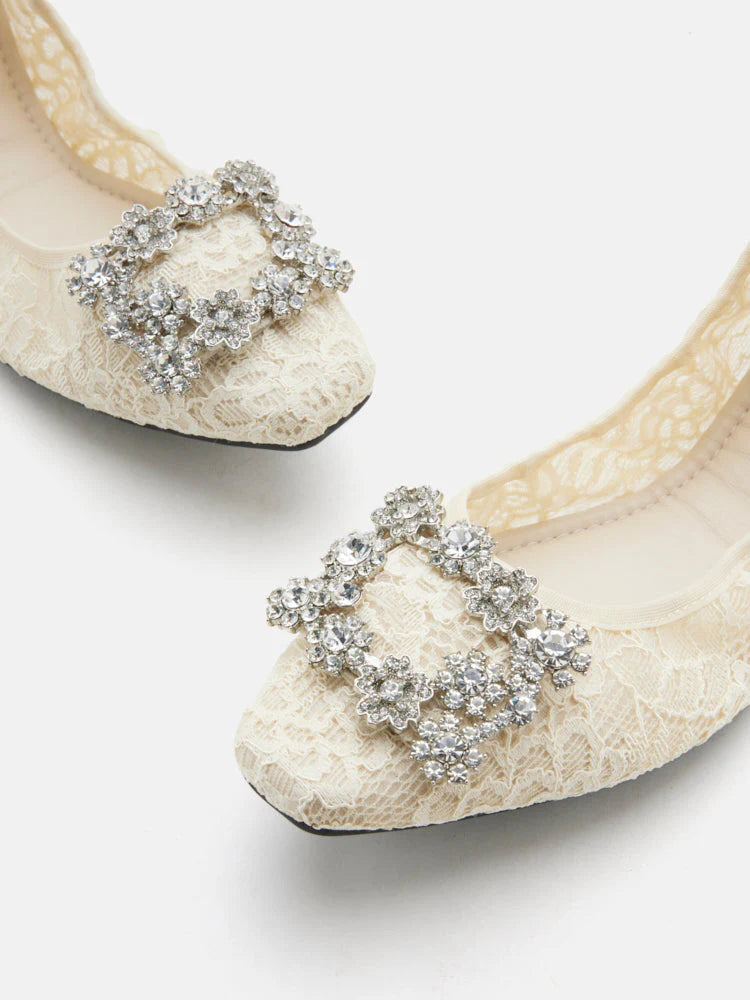 認識 Alina ——優雅與輕鬆便利的結合。這款可摺疊平底鞋專為忙碌的現代女性設計,結構柔軟靈活,卻不失時尚。浪漫的蕾絲外層散發著復古魅力,而超大、耀眼的鑽石飾扣則位於鞋頭的中心位置,閃閃發光的水晶為鞋子增添了一絲魅力。內部的柔軟鞋墊和結實而靈活的鞋底使其完美融合了奢華、舒適和實用性。